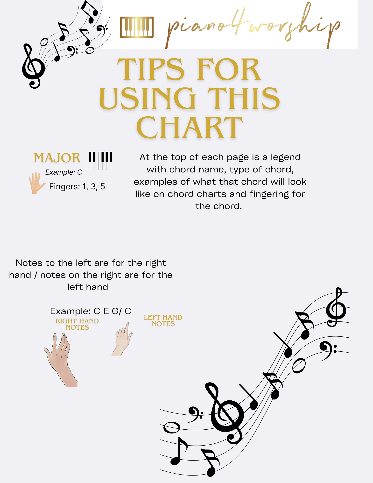 Hello, I'm Jaqueline, a passionate worship style pianist with 20+ years of experience in teaching and playing keys in worship settings. I created this chart to help fellow musicians overcome the challenges of understanding piano chords. My goal is to share what I have learned in a simple and straightforward and make your piano journey smoother and more enjoyable. Let's unlock the world of piano chords together!